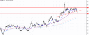いま現在の価格である2.05辺りがサポートラインとなっているのであれば、今回の下落の元となった2.08辺りからのFibo61.8辺りに存在する直近過去の安値くらいまで上昇する可能性が考えられます。またこのサポートラインが突破されるのであれば、次のサポレジ転換線である2.03辺りまで下落するかもしれません。そこは下から追随する日足の200SMAが到達してくるであろう地点で、そこが次のサポートとして機能しそうです。
