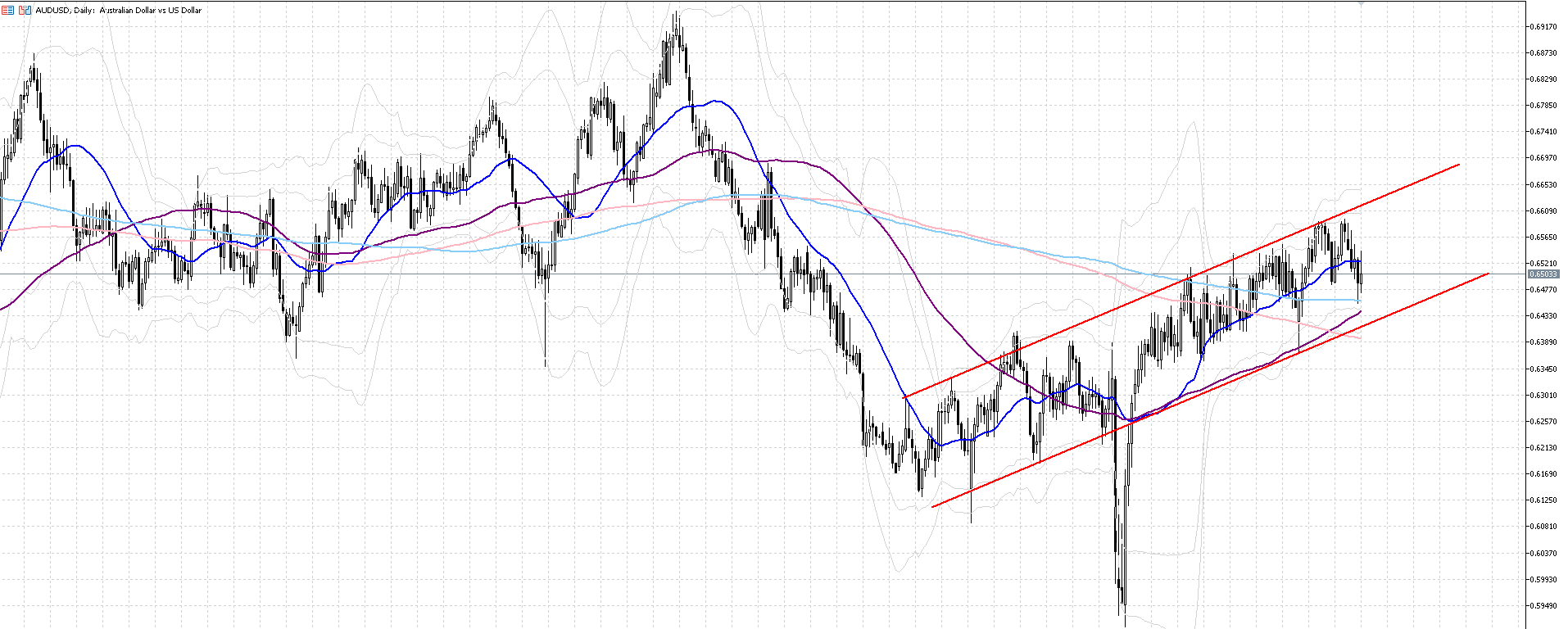 相変わらずユーロ(EUR)やスイス(CHF)が強さを保っていますが、ここにきてドルも優勢となっています。オセアニア通貨としては中国の経済状態が強弱マチマチとなっているため、明確な強さが戻っていないように思われます。さらにこれまで弱含みの米ドルが強さを取り戻してきたような形で、豪ドルがドルに対して弱くなっているようです。日足チャートをも見てもこれまで豪ドル優位だった形状が一旦下値をつけていますが、日足の200MAに支えられていて、さらにその下から75MAが上がってきているため大きなサポートとなる可能性は高そうです。