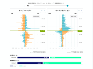 こちらはOANNDAさんの口座でエントリーされているポジションの一覧です。こう見ると、ロングポジションが根雪のようにたまっているのがよくわかります。ただ、現段階では大きな指標がなさそうなので、このままの状態でポジションを保持するトレーダーも多いことが想定されます。