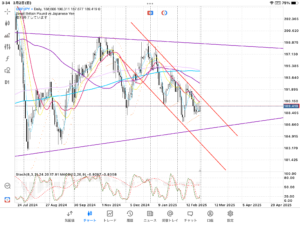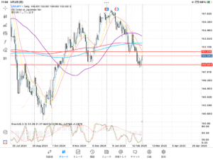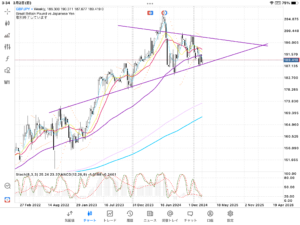こちらでは直近の値動きとして、2024年4月と2025年2月の2回、約150円前後という価格でサポートされていることが分かります。